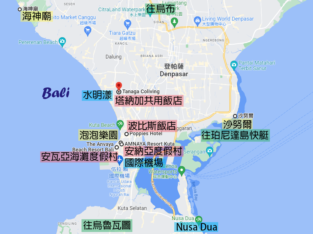 這篇文內也有大概介紹一下各區的特色,可以依照自己不同的需求選擇不同區的住宿,這篇峇里島住宿分區總整理分享給大家,希望在安排峇里島行程時能用得上喔!