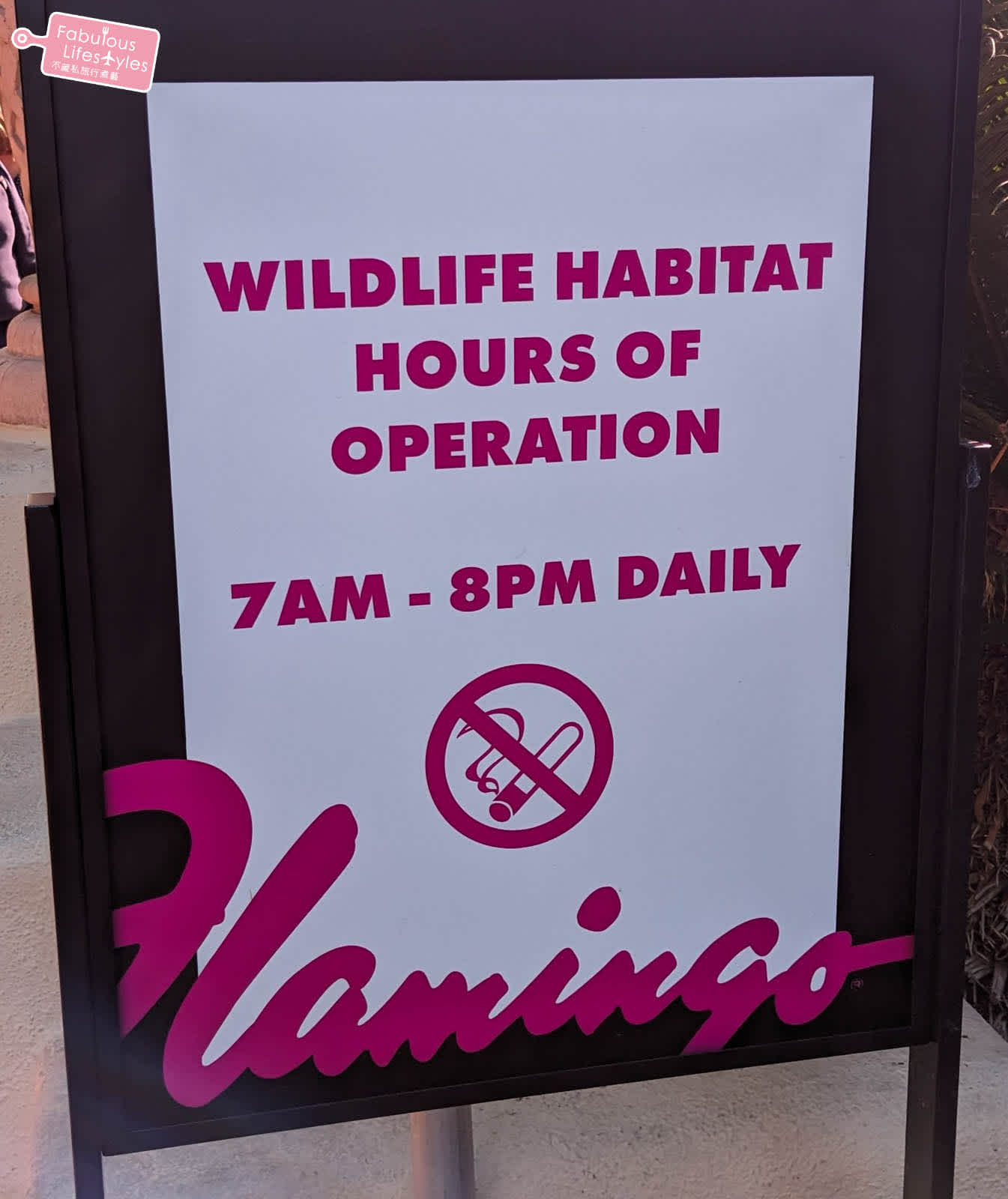 紅鶴酒店位於賭城大道上非常中心的位置,從賭城大道上走近這個紅鶴酒店極具代表性的招牌時就可以看到紅鶴野生公園的廣告牌~畫了一個大大的箭頭指引路線~