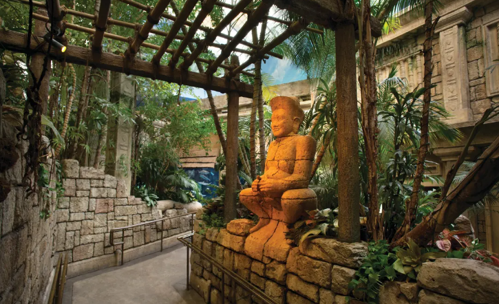 鯊魚礁水族館內延續著外面的叢林古代碉堡風格