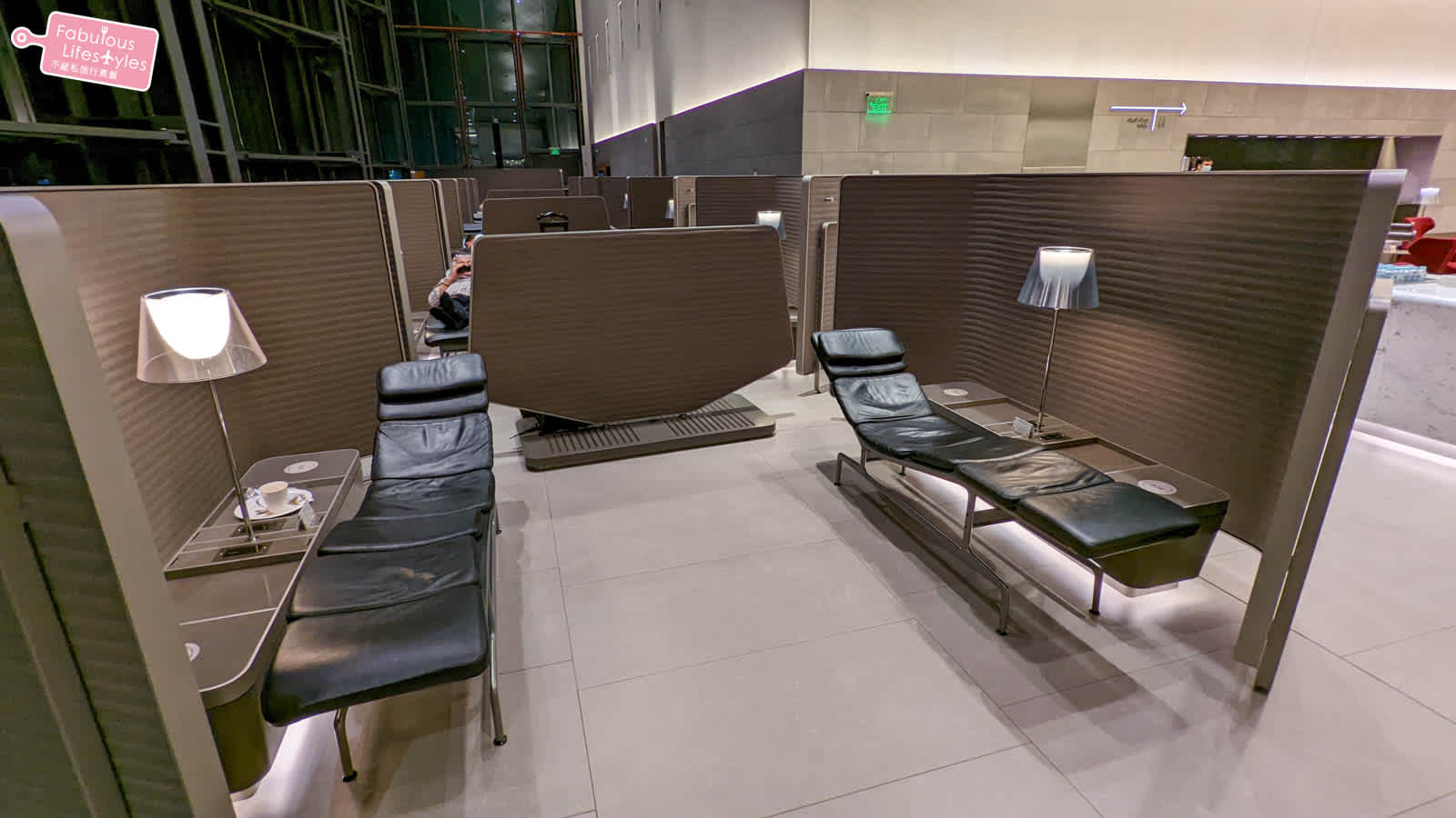 除了開放的座位區域之外,也有較隱蔽可供小睡的空間,貴賓室提供的躺椅旁還有一個超大的桌面可供旅客使用,感覺就超級舒適的阿