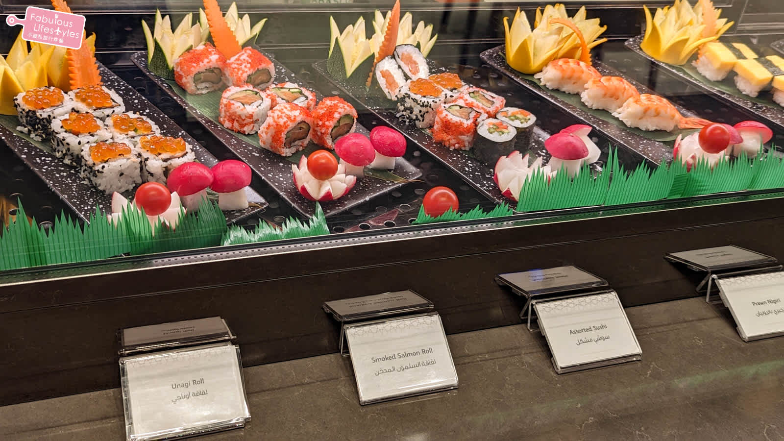 忍不住點了壽司~不過,必須說還是跟上次在 Al Mourjan business lounge 商務艙貴賓室時吃到的一樣,還是有蠻多進步空間的 😅 ~ (2023.6資訊)