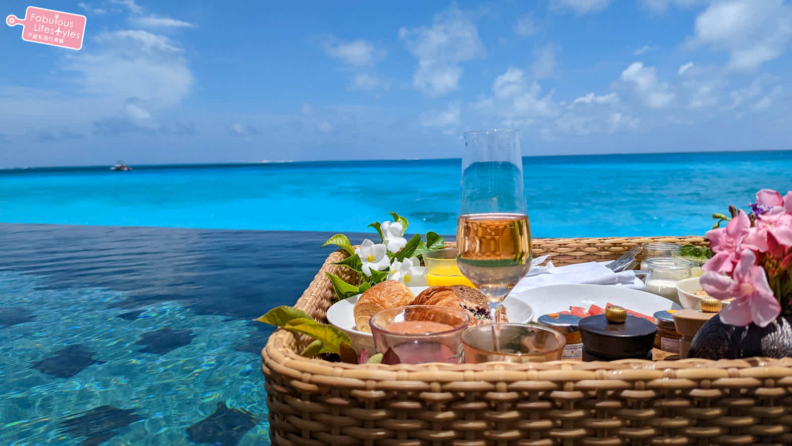 除了 Habitat 的早餐之外,如果入住水上 Villa 的話,也蠻推薦自費體驗一下漂浮早餐~~~畢竟入住含私人無邊境泳池的水上 Villa 的機會難得