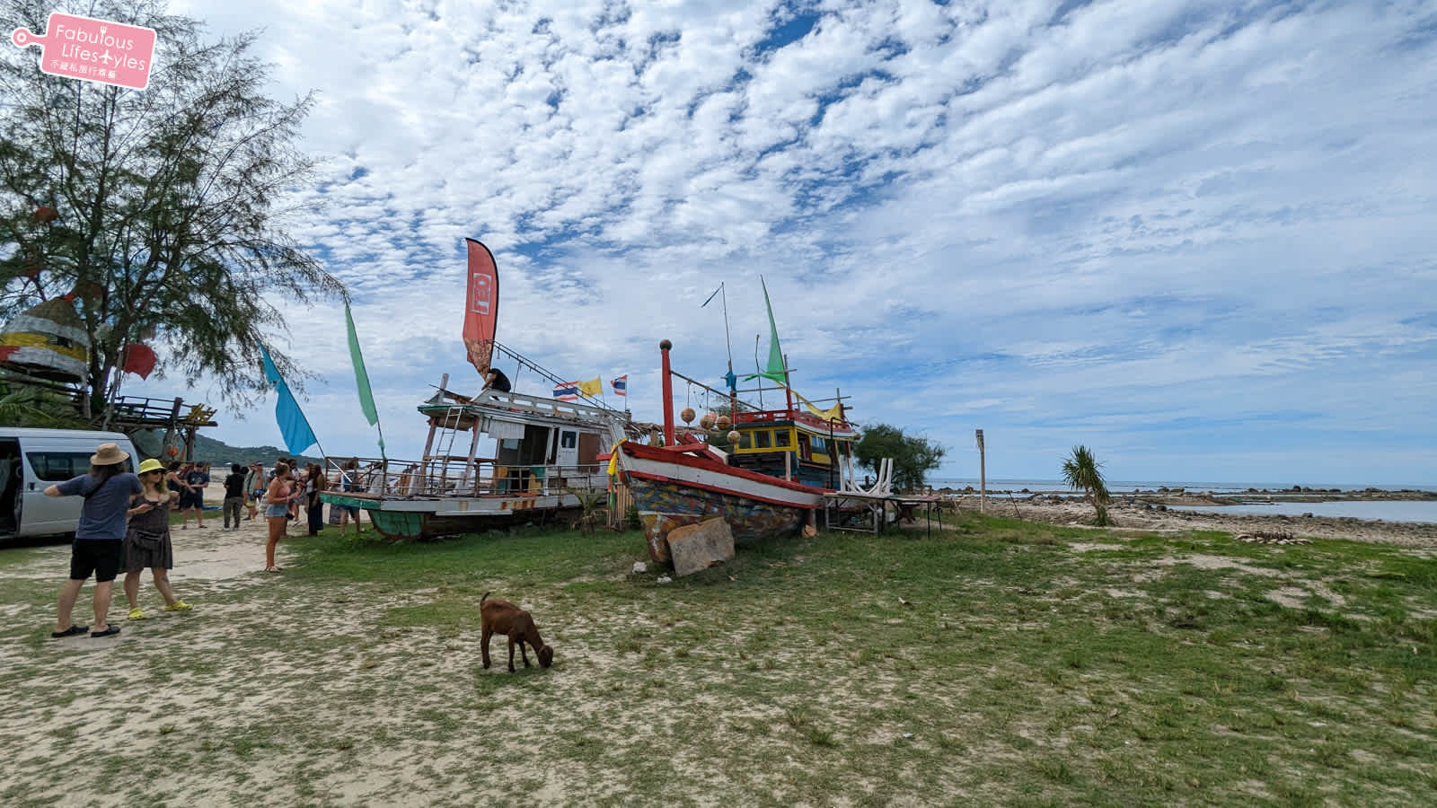 海灘旁還有兩艘色彩鮮艷的船,甚是可愛~
