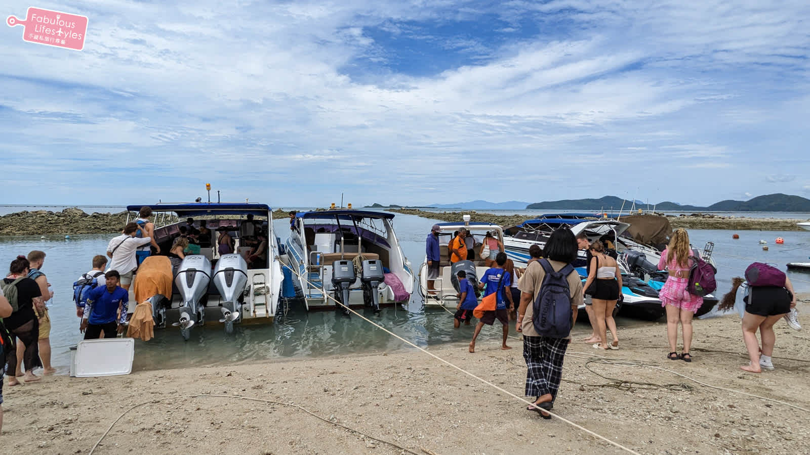 浮潛的地點周圍可以看到很多不同的船隻,包括飯店的船、傳統木製船、快艇等等,很多不同的旅行團都有豬島一日遊,不過行程似乎都差不多,都是在同一個地方浮潛後,再前往豬島。只是搭的船不一樣,有沒有附午餐,以及豬島上待的時間長短,以上幾點不太一樣而已,大家也可以依自己需求做選擇。