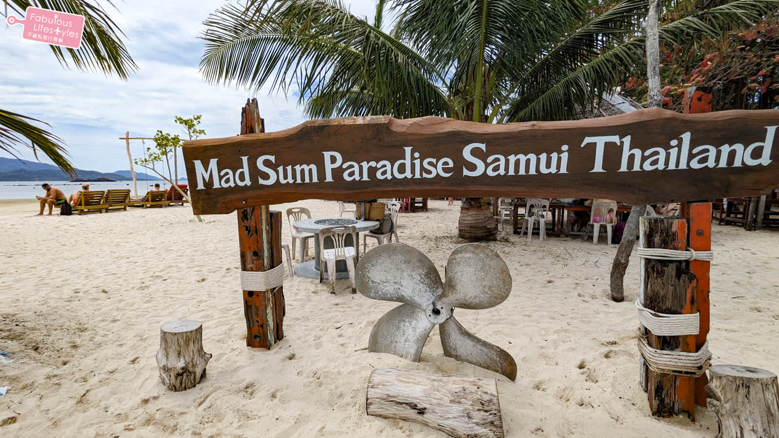 島上有個專門給遊客拍到此一遊照的地方~ 一個寫著島的名字 Mad Sum 的牌子,還有一個超大的螺旋槳,很有度假風!