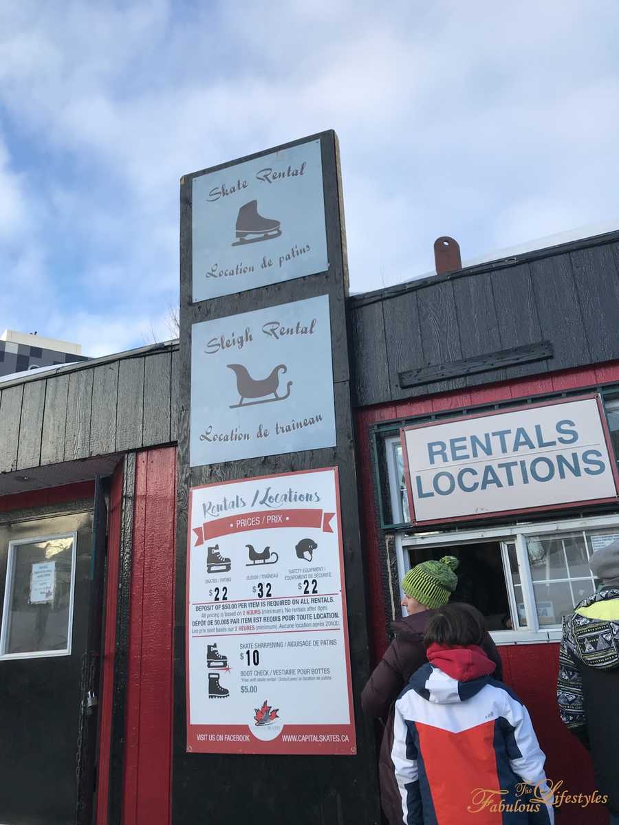 這些用具的租任一次最少都要租兩小時,兩小時的價格是冰刀鞋 CAD$22、雪橇 CAD$32、安全帽 CAD$22
