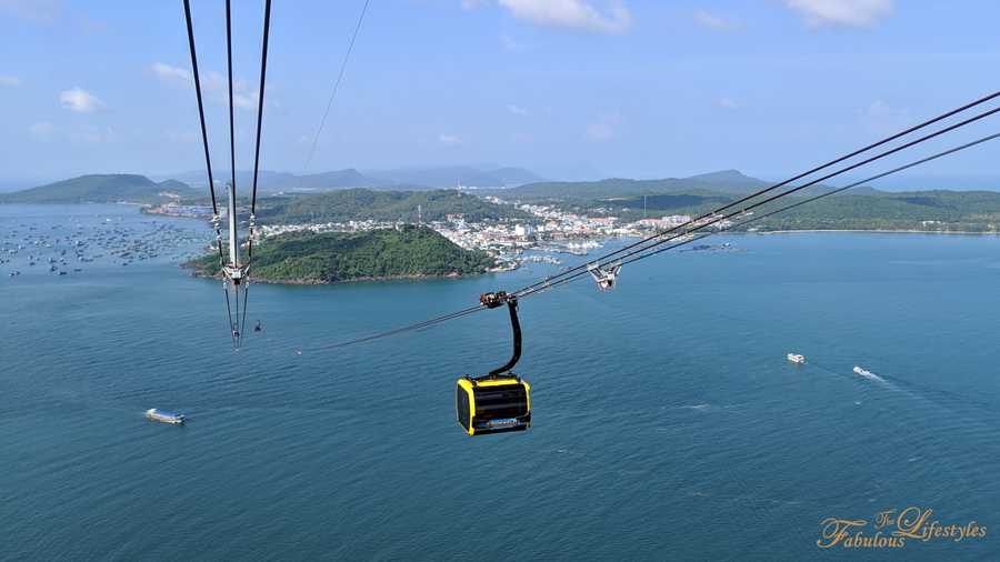 跨海纜車 Sunworld Cable Car 從富國島的 An Thoi 行駛到最大離島 Hon Thom 香島,至今仍是以 7,899.9 公尺長的距離保持全世界最長跨海纜車的金氏紀錄。纜車以每秒 8.5 公尺的速度前進,單程所需時間約 20 分鐘,在纜車上最高能從 160 公尺的高度 360 度鳥瞰富國島的群島,碧綠的海灣、成群的漁船,是富國島上我個人最喜歡的景點 (沒有之一)!