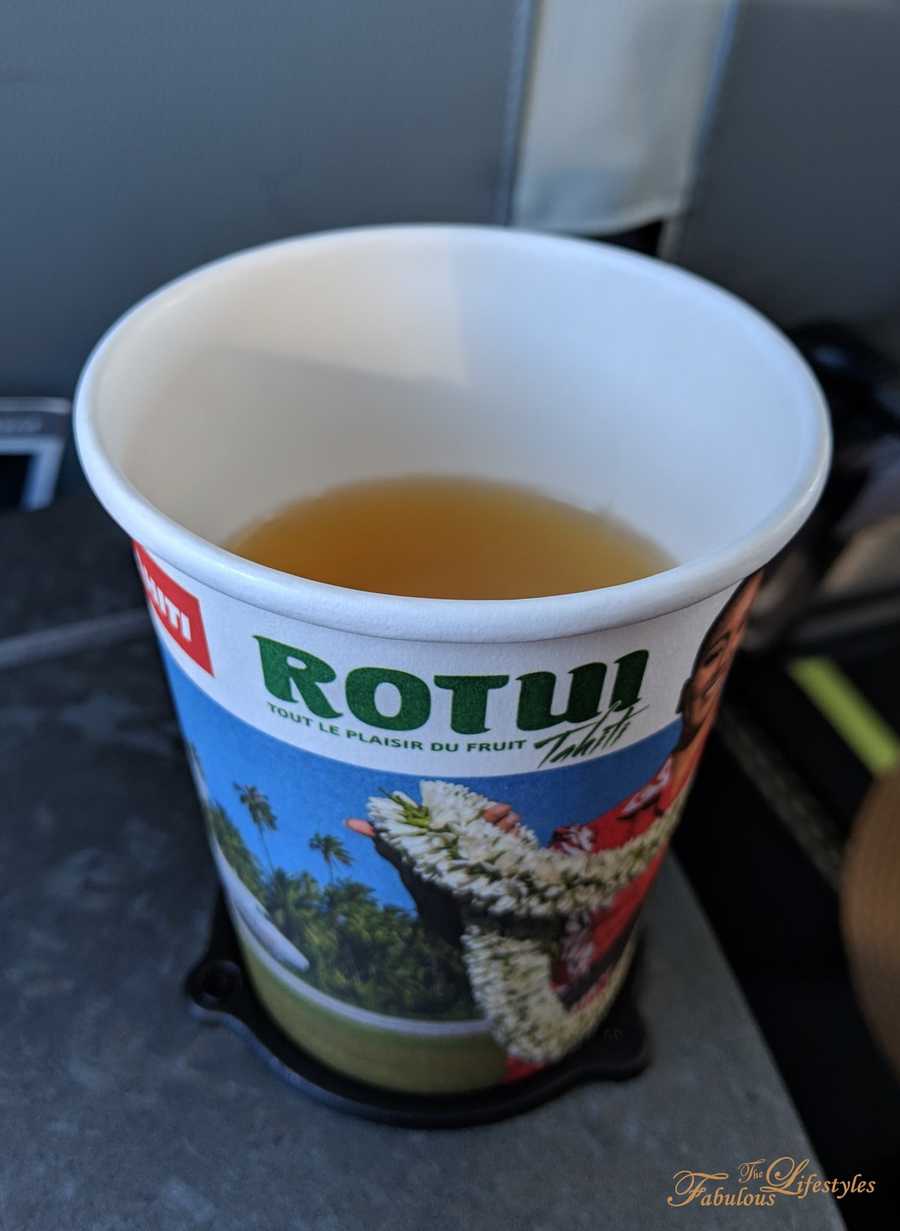 過了茉莉亞島之後會有一大段只有海景,這時空服員會端飲料來,一問之下才知道有提供茉莉亞島產的鳳梨汁!